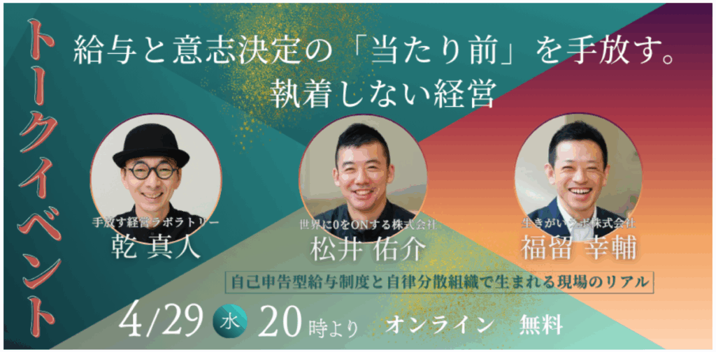 4月29日(祝)20:00から、世界に0をONする会社の松井さんと一緒に、トークイベントに登壇させていただきます!